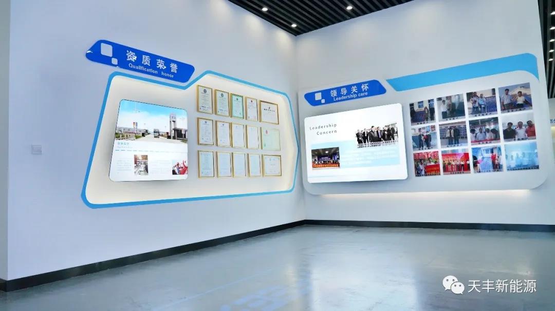 天豐新能源企業文化展廳,以 色彩”與“科技”為核心理念,展示著天豐產品的過硬資質,安裝時的精雕細琢,可謂一步一“景”,一景一“藝”,處處體現天豐新能源的匠心出品與精湛工藝,科技感與現代感融合,正是天豐新能源帶給客戶的佳體驗。
