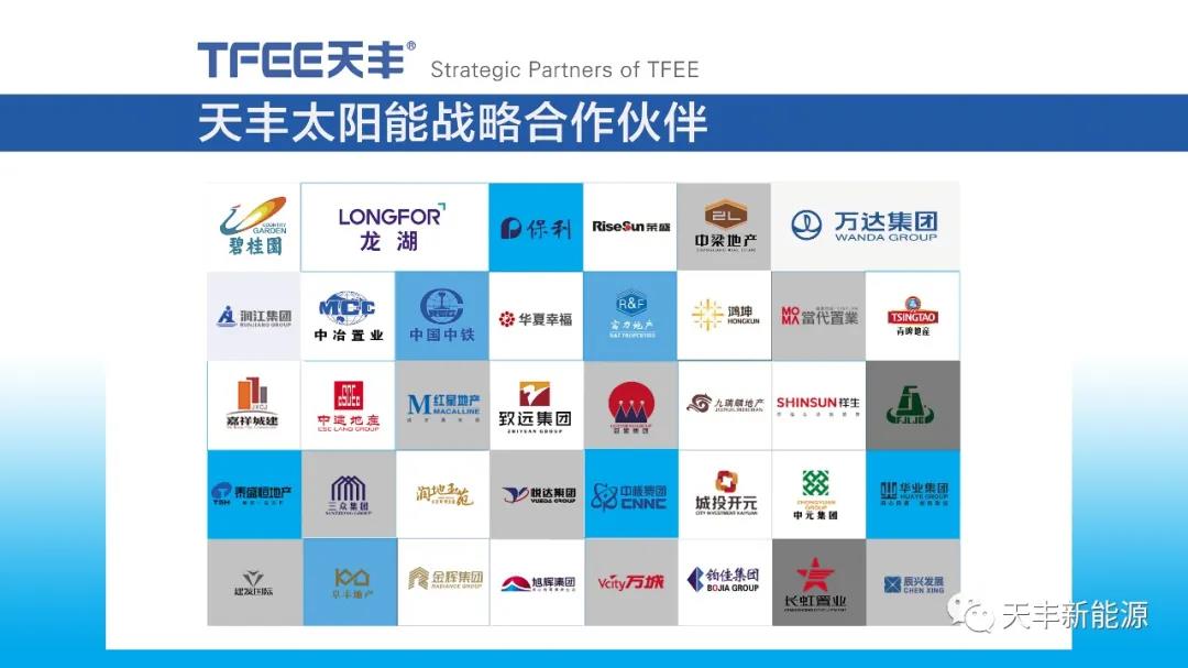 產(chǎn)品力與服務(wù)力的雙重提升、對(duì)光熱行業(yè)20余年的專注積累、誠(chéng)信務(wù)實(shí)的經(jīng)營(yíng)理念,讓合作伙伴對(duì)天豐新能源充滿信心,放心下單。得益于客戶對(duì)天豐品牌的口口相傳,天豐在市場(chǎng)的品牌知名度也在逐年擴(kuò)大,特別是在樓盤配套清潔熱水領(lǐng)域,已經(jīng)和碧桂園、龍湖地產(chǎn)、保利地產(chǎn)、中冶置業(yè)、中梁地產(chǎn)、中鐵、萬(wàn)達(dá)等數(shù)十家知名房地產(chǎn)巨企建立了深度戰(zhàn)略合作關(guān)系。